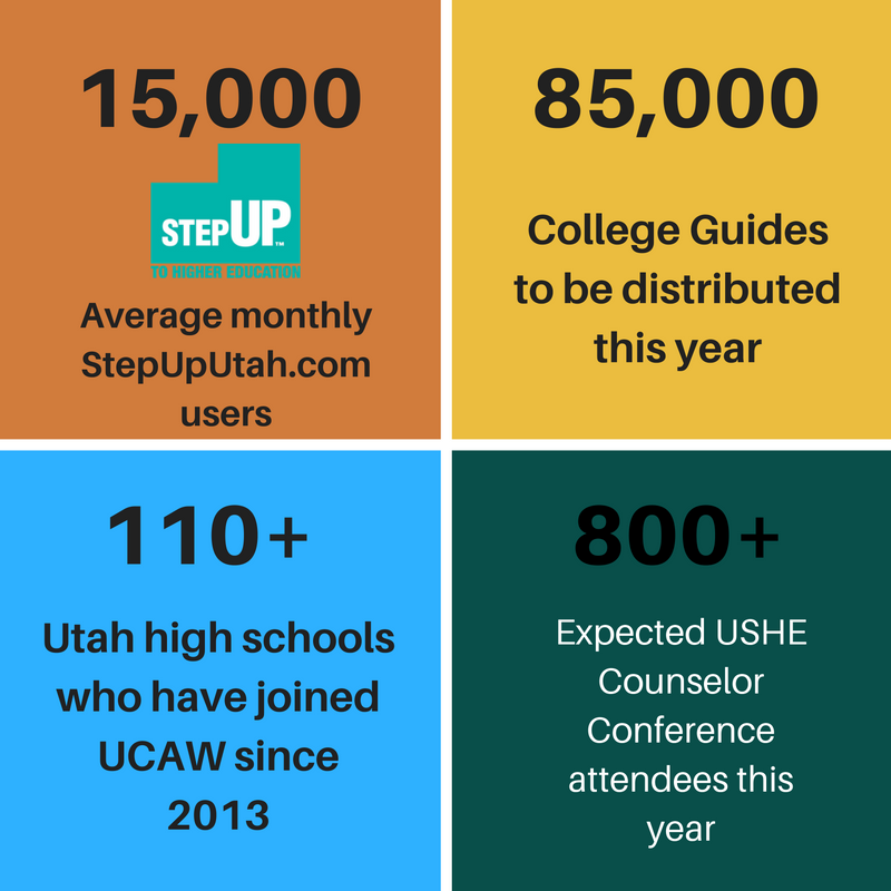 The most visible initiative is StepUp to Higher Education and the associated StepUpUtah.com website which was created in 2011. StepUp to Higher Education is part of USHE’s social awareness campaign, designed to encourage all Utah students to dream big about their futures, and then act on those dreams by preparing for and completing college. On average, 15,000 individuals use StepUpUtah.com monthly to access information on preparing and paying for college, find information about StepUp programs and events such as FAFSA Completion Open House Events, the Utah Scholars program, Utah College Application Week, and the Regents’ Scholarship..